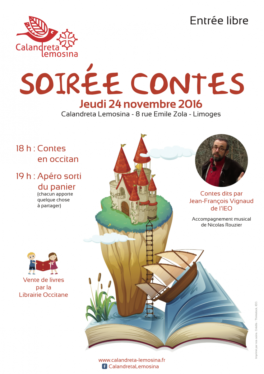 Publié le 15 novembre 2016 - 13:38 La Calandreta Lemosina organise une soirée contes le jeudi 24 novembre 2016 à partir de 18h.