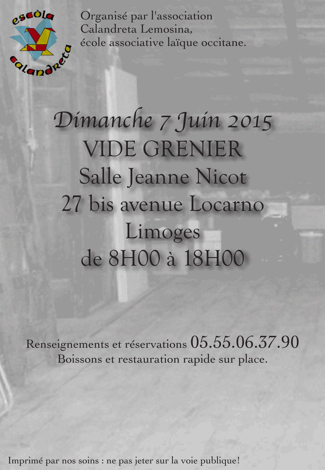 L'association sera ravie de vous accueillir pour un vide grenier le dimanche 7 juin 2015 de 8h00 à 18h00 à la salle Jeanne Nicot.